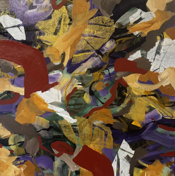 This piece blends vibrant colors with layered textures to evoke a feeling of awakening and change. Bold shapes and flowing lines move together, creating energy while maintaining balance. Subtle metallic accents add depth and surprise, reflecting a quiet moment of renewal as the seasons shift.